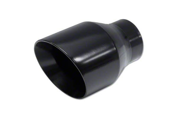 Construction and Appearance. Constructed with high-quality 304 stainless steel, this exhaust tip is finished with a premium high heat black powder-coat. It features a 4-inch double wall angle-cut outlet and a 2.50-inch inlet for easy connection.