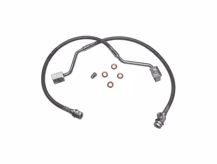 Enhanced Brake Control. The SuperLift Bullet Proof Front Brake Hose for 4 to 6-Inch Lift is engineered to provide reliable braking performance for vehicles that require additional line length. This product offers extended travel while maintaining steady hydraulic pressure, ensuring safer operation during off-road use or lifted applications. The SuperLift Bullet Proof Front Brake Hose for 4 to 6-Inch Lift plays an essential role in maintaining braking consistency when suspension height is increased.
