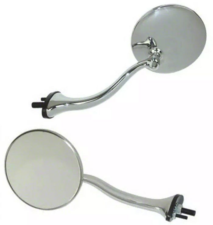 Swan neck mirrors were popular add-ons back in the day. Our door rear view mirrors feature a chrome arm with polished stainless hesd and distortion free glass. Keep an eye on the road and look sharp while you do it with a set of swan neck mirrors from Eckler’s.