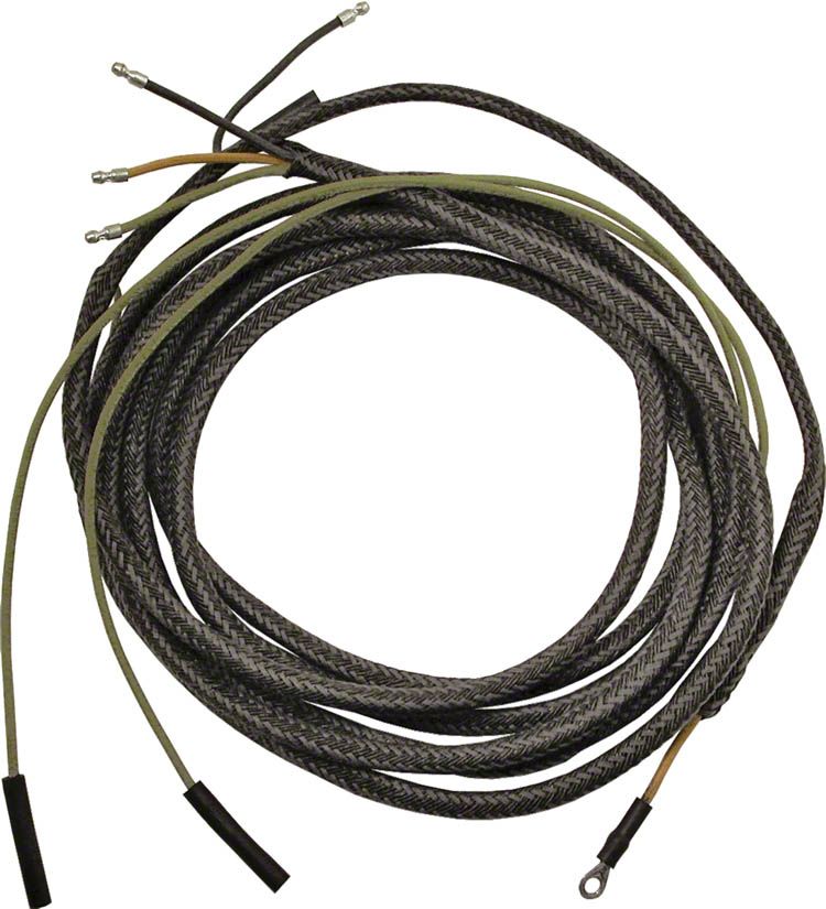 Also Pickup & Commercial except 1940 Sedan Delivery. Tail light extension wire harness plugs into the main dash harness or headlight harness (depending on year). It runs along the left side of the frame and includes leads for the gas tank sending unit, stop light switch, left tail light, and rear license lamp (when applicable).