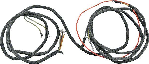 Also Pickup. Tail light extension wire harness plugs into the main dash harness or headlight harness (depending on year). It runs along the left side of the frame and includes leads for the gas tank sending unit, stop light switch, left tail light, and rear license lamp (when applicable).