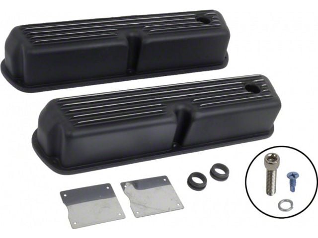 Dress up your classic Ford's engine with these beautiful retro-style full-finned aluminum valve covers from MAC's! They feature durable black powder-coat finish and fully-finned tops with exposed fin edges for a clean, custom look. These valve covers fit small block Ford V8 engines (289-302-351W-5.0L) and feature additional height required to accommodate aftermarket/performance valve train components. Count on MAC's for all of your classic Ford needs!