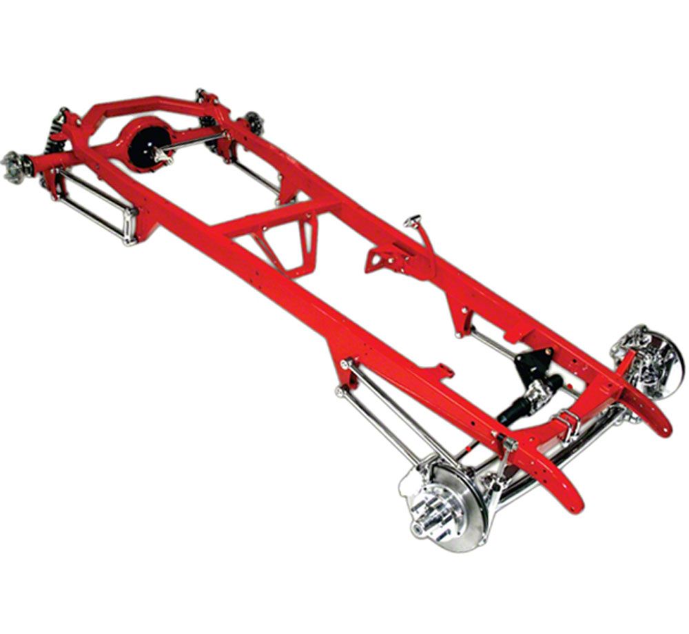To build the best, start with the best! TCI's 1928-1931 Ford complete chassis is made from 2" x 4" x .125 wall all-American Steel, which makes the TCI boxed frame rails far superior to the original stock Ford frame. TCI uses a dropped tubular front axle in conjunction with a mono spring and RideTech shocks for the front suspension, and rear suspension uses a traditional 4-link set up with adjustable coilovers.