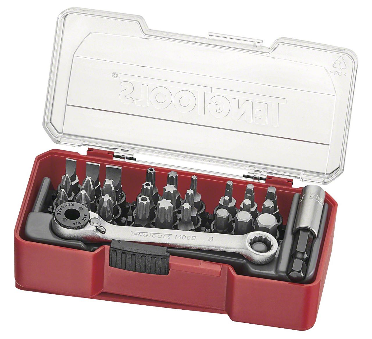 29 piece 1/4 inch hex bit set including all the most commonly used screwdriver, hex and torx 25mm bits to suit different applications 1/4 inch hex 0.98 inch/25mm long bits: flat 0.6x3.5, 1.0x5.5, 1.6x8.0mm, PH1, PH2, PH3, PZ1, PZ2, PZ3, TX10, TX15, TX20, TX25, TX30, TX40, TPX20, TPX25, TPX30, Hex 2, 3, 4, 5, 6, 8mm, ROB1, ROB2, ROB3 1/4 inch drive accessories: 60mm magnetic impact bit holder, 60mm quick chuck impact bits holder Each bit is precisely machined to guarantee accurate size and is durable and long lasting Supplied in a unique Teng Tools TJ tray featuring a clear fold up lid so you can see everything inside the set as well as a sliding catch to secure the set when not in use