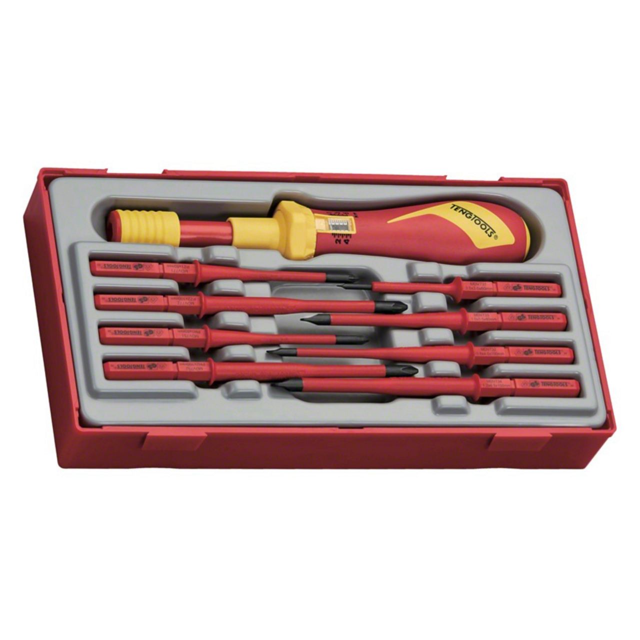 [ TORQUE SCREWDRIVER ] 1/4 inch drive, 1-5Nm with easy to read Nm scale window and slipper mechanism to ensure that no torque is applied beyond the set torque. [ TWIST LOCK FACILITY ] to ensure the set torque is maintained. [ SCREWDRIVER BLADES ] 3mm, 4mm, 5.5mm, 6.5mm, PH1, PH2, PZ1, PZ2. [ TWO COLOR INSULATION ] Screwdriver blades feature integrated protected insulation with two colors to clearly indicate if there is any damage. [ LIVE WORKING UP TO 1,000 VOLTS ] Approved for live working up to 1,000 volts and is designed and manufactured to DIN5264, DIN ISO 8764-1 and IEC60900 (EN60900). [ TOTAL TOOL ORGANIZATION ] Supplied in a unique tool tray which features a removable lid and dove tail joints. The set can be used on its own as a standalone set or as part of our Get Organized system where all of our tool trays click together allowing you to build your ultimate tool setup. Lifetime warranty