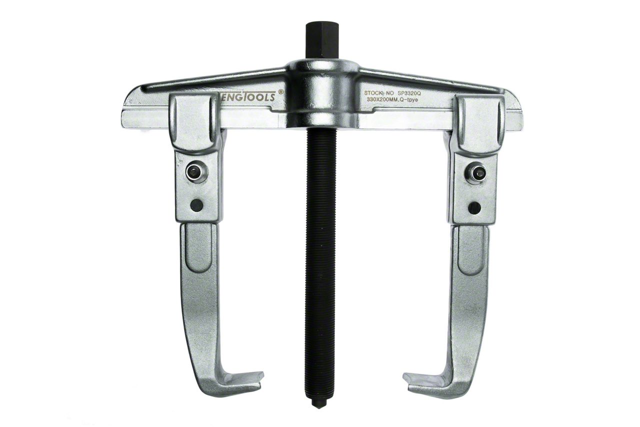 2 Arm Quick Action Universal Internal/External Puller. Features quick lock action on the legs for fast adjustment. Internal Clamping Width: 10 inches / 250mm. External Clamping Width: 13 inches / 325mm. Clamping Depth: 8.1 inches / 205mm. Simple to use twin legged puller for fast removal of pulleys, wheels and bearings. Reversible legs for use as an internal or an external puller. The arms can be slid on the yoke and be turned for internal or external pulling. Strong, drop forged design.