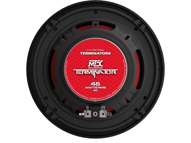 The TERMINATOR6 is a 6.5" coaxial speaker that is capable of handling up to 45W RMS power and has a 4Ω impedance. The unit includes a durable steel basket, polypropylene cone, and silk dome tweeter. The polypropylene woofer and silk tweeter are engineered to reproduce high quality sound for any type of music.