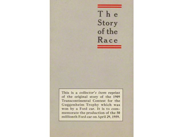This collector's item reprint tells the story of the great Transcontinental Contest of 1909 for the Guggenhiem Trophy. Includes a map of the race route, newspaper clippings and contest rules. Commemorated the production of Ford's 50 millionth car on April 29, 1959.