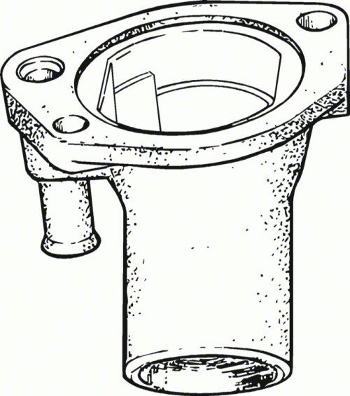 This concours-quality aluminum casting has a recess for the thermostat (for manifold without thermostat seat).