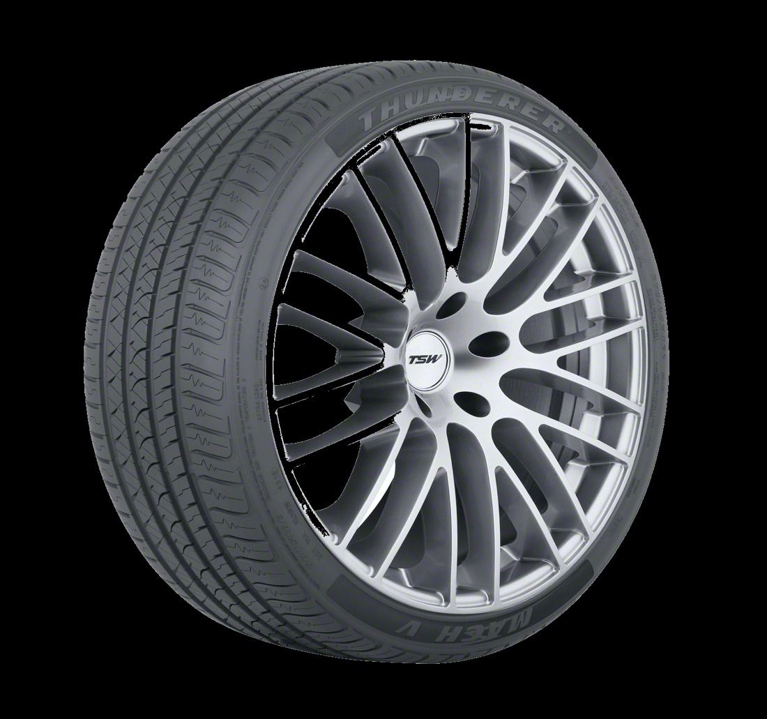 The Thunderer Mach V is an ultra high-performance tire designed for exceptional handling in all weather conditions. On the city streets or on the country roads, the Mach V’s asymmetrical tread design and enhanced hydroplaning resistance technology provides superior performance for a quiet, comfortable, and dynamic ride. With 45,000-mile limited treadwear protection and our No Questions Asked, 25/365 Free Replacement Limited Protection Policy, the Mach V delivers power and performance wherever you roam.