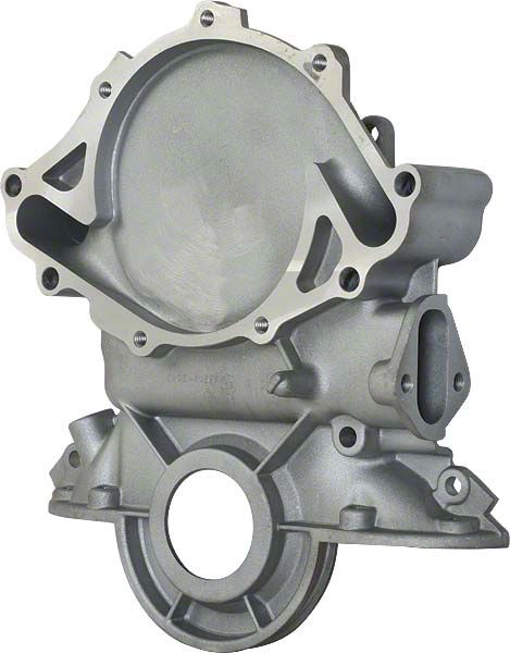 Made from high-quality die-cast aluminum. This Timing Chain Cover is an exact reproduction for use with aluminum water pumps. Concours correct, includes molded-in Timing Pointer. Does not have an oil filler tube hole that was used on early production cars that did not have an oil fill tube in the valve cover.