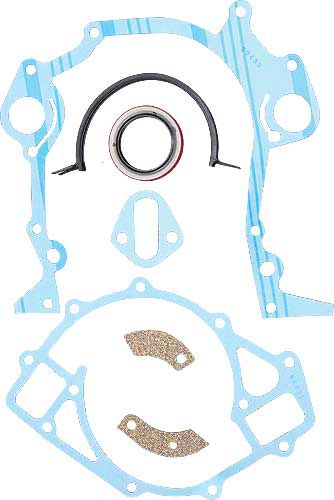 Contains all gaskets and seals needed for removal and replacement of the timing cover. Will contain oil pan gasket replacement ends if the oil pan gasket must be replaced for proper installation.