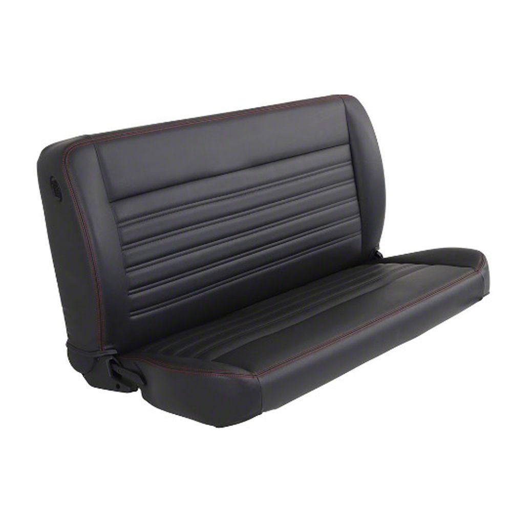 Eckler's no longer carries the Pro-Series Universal Solid Back Sport-Long Bench Seat without Center Bolster; 60-Inch; Charcoal Black Vinyl with Red Stitching (Universal; Some Adaptation May Be Required). Please check out F-Series Trucks Interiorfor an updated selection.