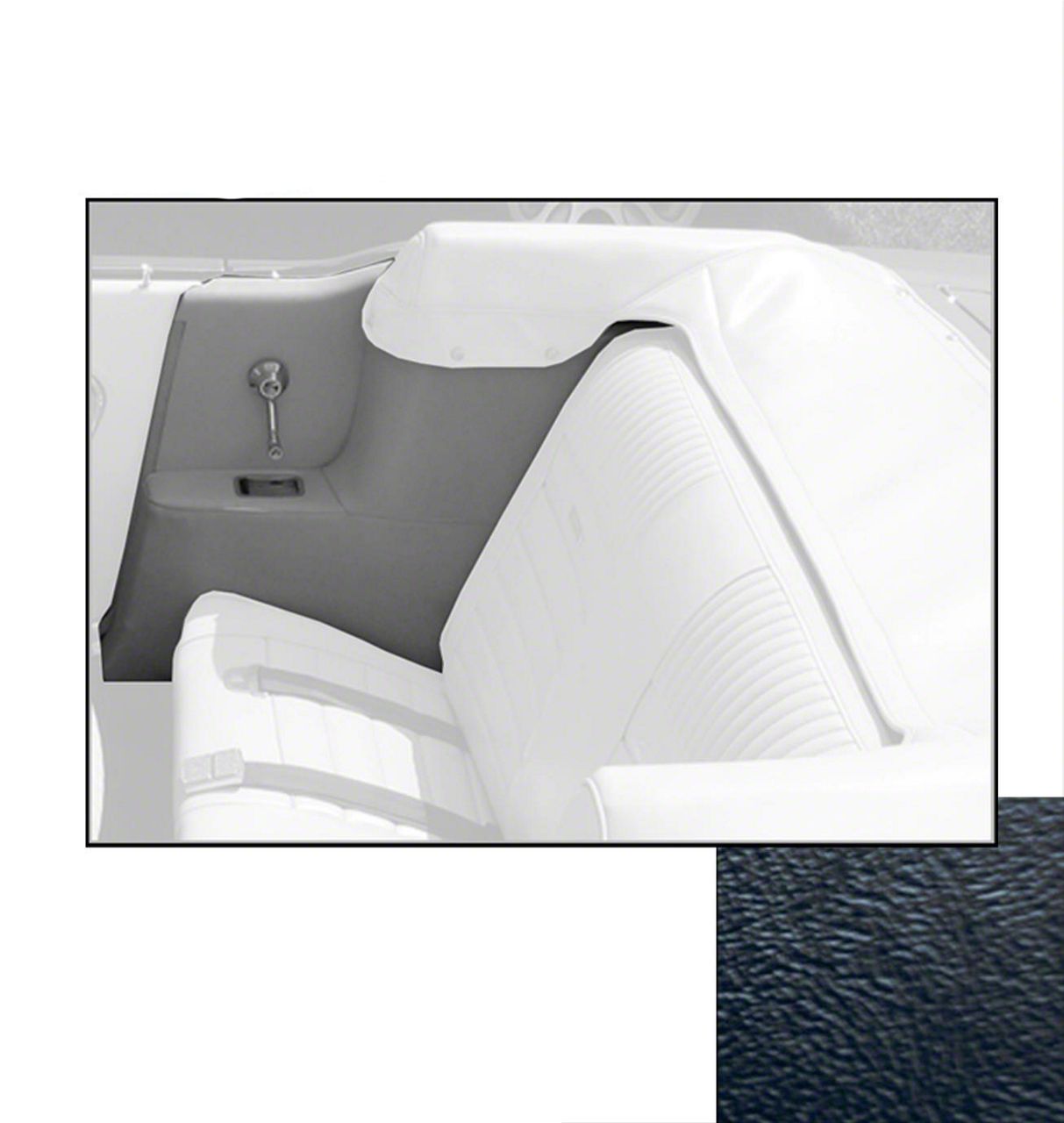 Made of high quality vinyl, this quarter trim upholstery sports a knitted cross-linked backing that helps it maintain its original shape, allowing for easy installment. Sold as a pair and offered in eleven colors, this upholstery is a great way to bring some life back to your Mustang.