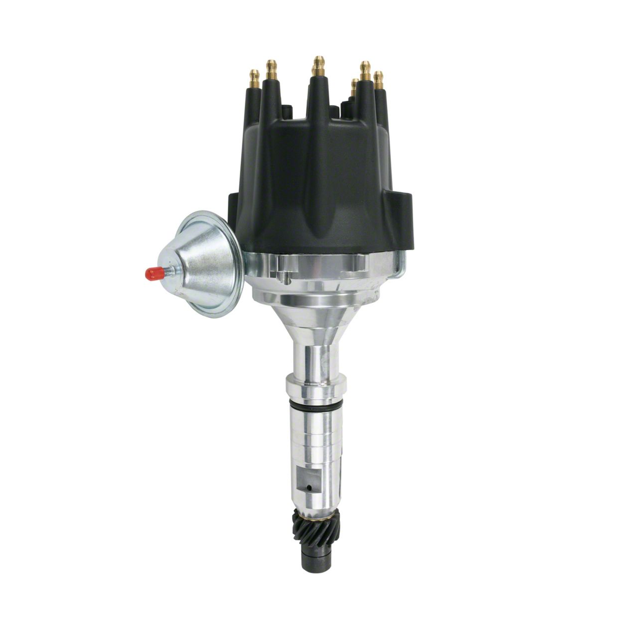TPS Pro Series Ready to Run Distributor is perfect for a street performance upgrade. It features a CNC-machined billet aluminum body and hardened steel shaft, with a sealed ball bearing on top and a sintered steel bushing on the bottom. It also comes with a fully adjustable mechanical advance, vacuum advance, magnetic pickup trigger, and a high-output circuit board module with digital tach output. The dielectric cap comes with solid brass terminals and a color-matched wire retainer.