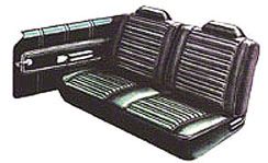 This seat upholstery is a correct reproduction of the original. We offer the original Corinthian grain with Ruffino grain inserts in 32 oz. vinyl, with the correct horizontal patterns sewn as original. The colors we offer are very true to the original, however they may not exactly match used door panels. Time, wear, and UV rays change vinyl colors. Often these didn't match from the factory anyway due to production differences. Note: These prices are for new seat covers only and do not include seat frame or foam. Be prepared to replace the foam, or at least pad it out. Usually original covers shrink over time which compresses the foam. If a new cover is simply installed over used foam it will result in a baggy appea