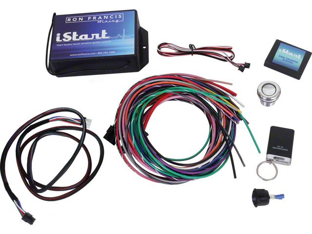 This is a complete touch sensitive starter system with advanced security. This system simulates all five positions of a typical keyed ignition: Off, Accessory, On, Crank and Run. Touch sensitive button indicates different colors for each mode. The system includes security module with proximity sensors. Can unlock and lock doors as you come in and out of range. Polished aluminum iStart button is disabled until you come into range. Instructions included. For all of your Ford Mustang needs, count on MAC's!