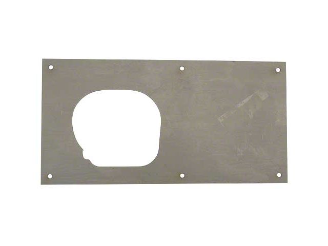 Rivets to the #2 board, filling the space around the transmission tower. Stamped steel.