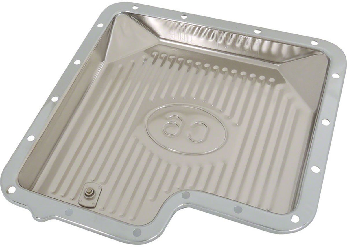 • The Ford C6 was a great transmission installed as original equipment from the '60s until the late '80s. They have found their way into countless other modified vehicles This stamped steel, chrome plated pan makes them even better. There is a magnetic drain bolt to catch shavings and make fluid changes a snap. It can be attached with original hardware and OE style gaskets. It looks great too!