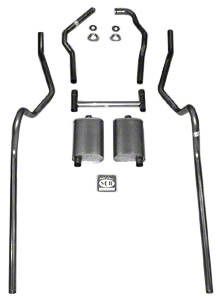 2" dual turbo with 3/4 headers with frame horns. Sedan and hardtop models only. Flanges must be welded. Turbo exhaust systems are pre-designed to accommodate after-market shock bar kits. System comes with turbo mufflers.