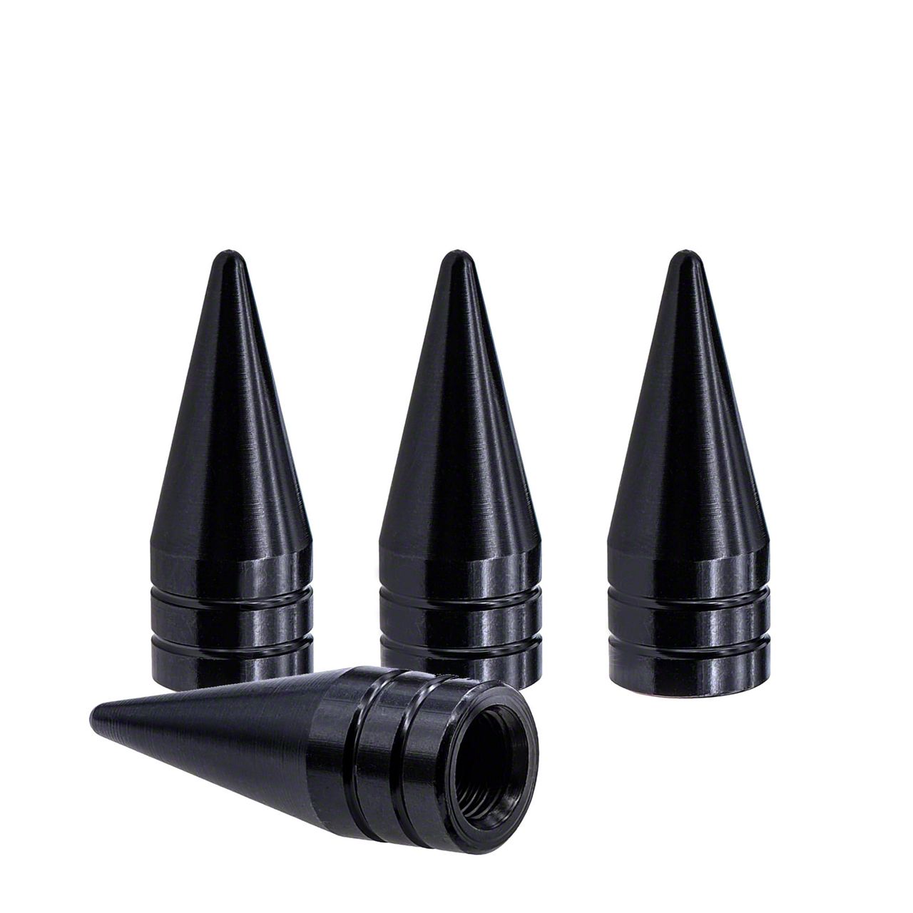 Black Spike Valve Caps; 4-Pack (Universal; Some Adaptation May Be Required)