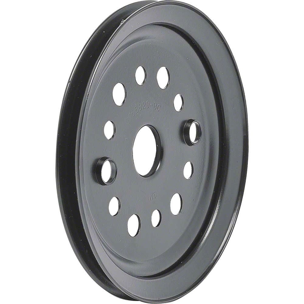 Reproduction crankshaft pulley for various 1955-1972 Chevrolet car and truck models with small block, short water pump, and without air conditioning. Each pulley is manufactured to correct factory specifications offering an authentic appearance and fitment. Crankshaft pulley is single-groovethat measures approximately 6-3/4" diameter. Includes correct GM part number # 3755820 stamped on pulley for authenticity. Fits 265, 283, 327, 350 without AC.