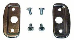 Latch plate. Both latch plates that go around the latch handles with mounting screws.