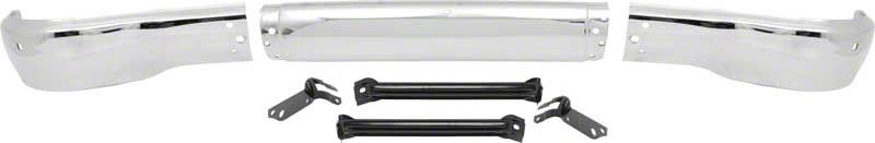 Reproduction of the original front bumper for 1955 Chevrolet Bel Air, One Fifty Series, Two Ten Series, and Nomad models. Each bumper is designed and manufactured to replicate the original 3-piece OEM design. Features correct contours for an authentic fit and appearance. Bumpers are finished in triple chrome plating ensuring a quality appearance once, installed. Bumper sets includes the center, RH and LH sections along with 2 brackets.
