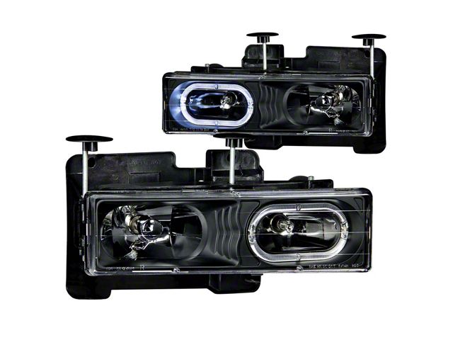 Crystal Halo Headlights; Black Housing; Clear Lens (88-00 C1500, C2500, C3500, K1500, K2500, K3500)