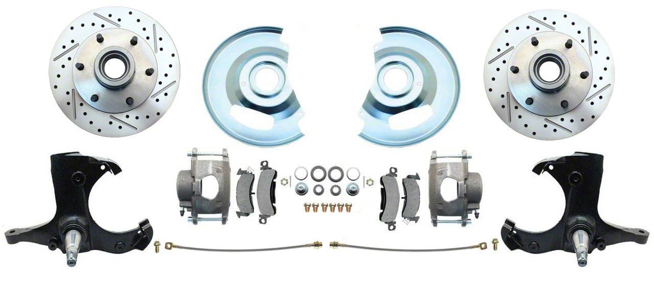 Front 6-Lug Disc Brake Conversion Wheel Kit with Drilled and Slotted Rotors; Zinc Calipers (63-70 2WD Blazer C10, C20)