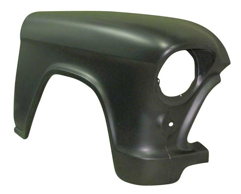 Front Fender - RH - 55-56 Chevy GMC Pickup ('55 2nd Series)RH = Passenger SideNew reproduction front fender for the 1955-1956 GM Fullsize Pickup's. Each fender is manufactured using high quality, heavy gauge steel and features, depending on application, correct as original body lines, braces, marker light holes, and antenna cut-out. These fenders arrive in a black EDP Coat finish and will require standard prep work prior to paint. * For use on 2nd design '55 models only *Introducing our high-quality Front Fender, designed to fit 1955-1956 Chevy GMC Pickup trucks, specifically the '55 2nd Series. Made from durable materials, this fender is built to last and provides reliable performance.Our Front Fender is a perfect reproduction of the original part and matches the style and appearance of your classic truck's front end. It installs seamlessly and features a precision fit that ensures maximum protection for your vehicle.This Front Fender is an easy and affordable way to upgrade the appearance of your 1955-1956 Chevy GMC Pickup and restore its original look. It's a direct replacement for your old, worn-out fender and installs easily with no additional hardware required.Invest in our Front Fender today and enjoy the added convenience and style that it offers. It's the perfect way to upgrade the appearance of your 1955-1956 Chevy GMC Pickup and maintain its authentic appearance.