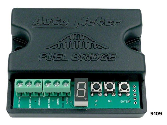 The Fuel Bridge wires in between your fuel level gauge and sending unit and allows you to use any AutoMeter fuel level gauge with any stock or aftermarket sending unit. The triple push button with LED display allows for easy set up. This unit is a compact size at 3 1/8" wide x 2 1/2" tall x 3/4" thick. A low fuel level warning is available at 10% and off at 15%. It can turn on an LED or relay.