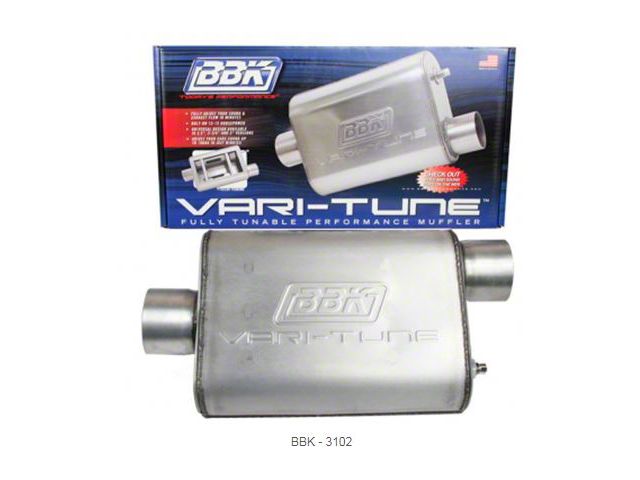 Truck universal Vari-tune mufflers are a great performance addition for any Truck. American designed and built, these performance mufflers are one of a kind, offering a muffler that can be adjusted for sound and horsepower by just moving the adjustment screw under the car. The unique design of this superb muffler allows side-to-side tuning to cut out the drowning or resonance that often happens when at a low rpm. Available aluminized or in stainless steel and in 2.5", 2.75", and 3.0", these mufflers are offered in various offsets to insure proper fit on most aftermarket and OEM applications. When you are in the market for a new high-performance muffler, invest in a BBK universal Varitune muffler. Available at Eckler's Classic Chevy Trucks today!