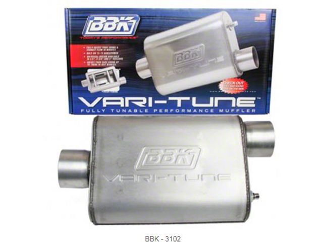 Truck universal Vari-tune mufflers are a great performance addition for any Truck. American designed and built, these performance mufflers are one of a kind, offering a muffler that can be adjusted for sound and horsepower by just moving the adjustment screw under the car. The unique design of this superb muffler allows side-to-side tuning to cut out the drowning or resonance that often happens when at a low rpm. Available aluminized or in stainless steel and in 2.5", 2.75", and 3.0", these mufflers are offered in various offsets to insure proper fit on most aftermarket and OEM applications. When you are in the market for a new high-performance muffler, invest in a BBK universal Varitune muffler. Available at Eckler's Classic Chevy Trucks today!