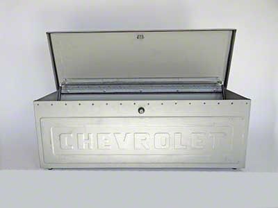 MAR-K Truck Tool Box; Embossed Chevrolet Script with Race Track (54-87 C10 Stepside, C15 Stepside, C20 Stepside, Chevrolet/GMC Truck Stepside, K10 Stepside, K15 Stepside, K20 Stepside)