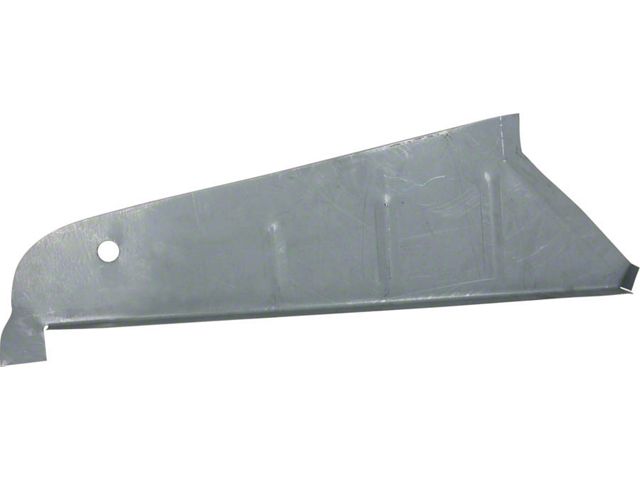 The trunk floor side extension runs from the wheelhouse to the back panel and extends from the trunk floor down to the bottom of the quarter panel.