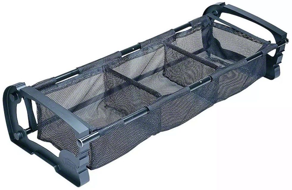 This Cargo Organizer has three segmented cargo compartments that keep groceries and travel gear secured. Its solid construction is supported by a sturdy plastic frame, durable steel tubing, and heavy-duty netting. The length adjusts from 37" to 43" to fit most vehicles, and the netting easily folds back and out of the way when not in use. For those in the automotive hobby this is great for carrying cleaning products, trophies, manuals, and support material for car shows or touring.