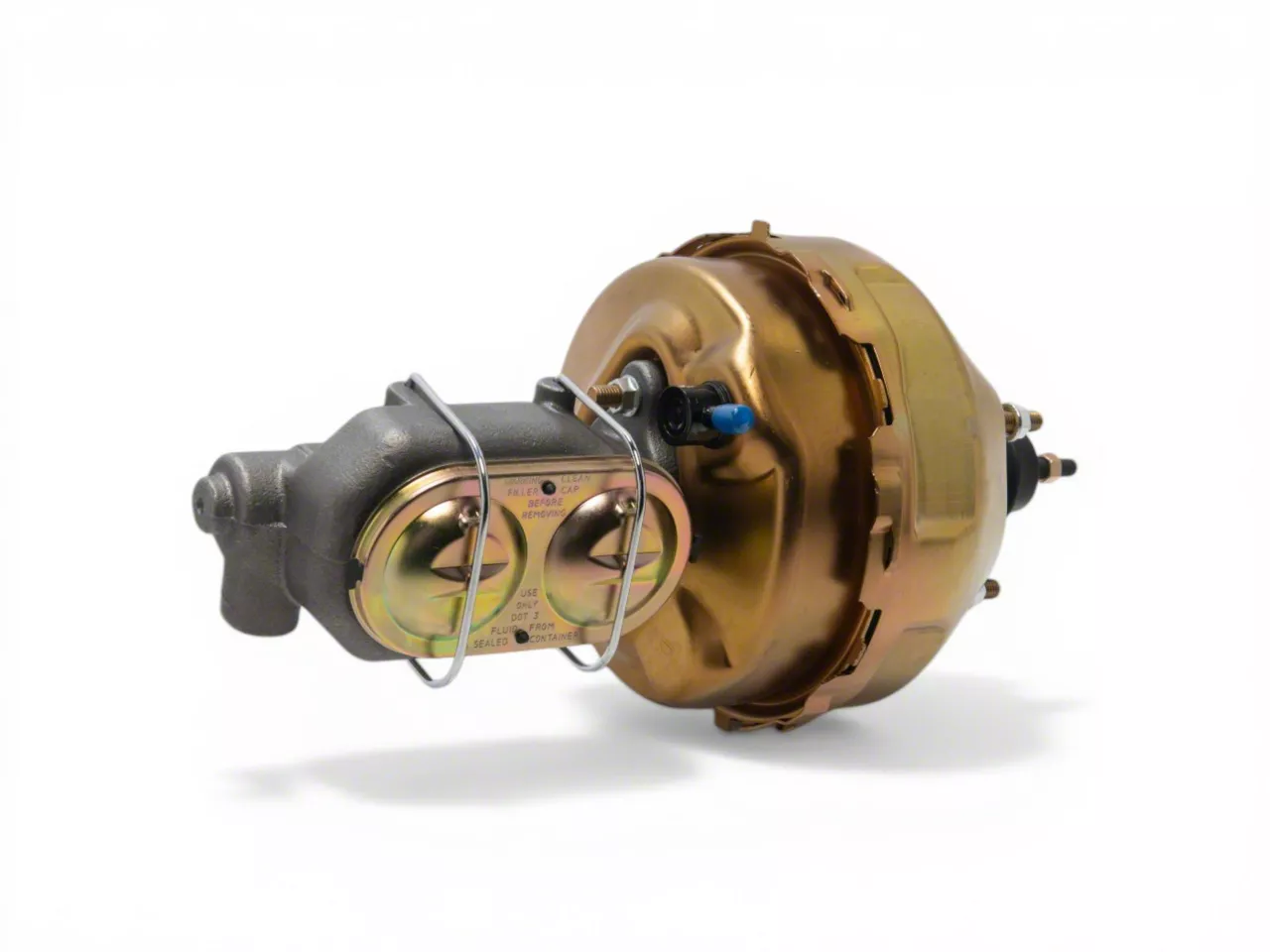 Construction and Appearance. Featuring a durable gold zinc finish, this brake booster not only resists corrosion but also adds a bold, high-performance look to your engine bay. It’s manufactured in the USA and uses a 1-1/8-inch bore, built to OE specifications for seamless integration. The unit is engineered with 3/8-24 pedal rod threads and supports both stock and Tuff Stuff universal brackets.
