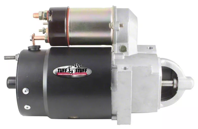 Tuff Stuff starters are hand made from premium quality new components - not remanufactured - and are quality built in USA. Most Gear Reduction style starters, which are considerably smaller than the OE starters, incorporate a mounting block that can be indexed to gain additional clearance. Starters include mounting bolts and shims where applicable. Ideal for high horsepower muscle cars, hot rods, trucks and daily-drivers. Finishes include chrome plated, zinc plated and powder coated.