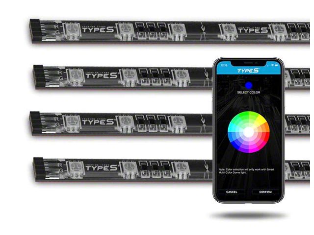 Other Features. The TYPE S HyperBright Smart LED Interior Kit comes with a smart hub controller, allowing you to customize the lighting through an app. The app-controlled feature provides convenience and versatility, letting you choose from a wide range of colors and lighting patterns to suit your mood or style. The kit uses basic plugs for easy connectivity, making the installation process straightforward and hassle-free.