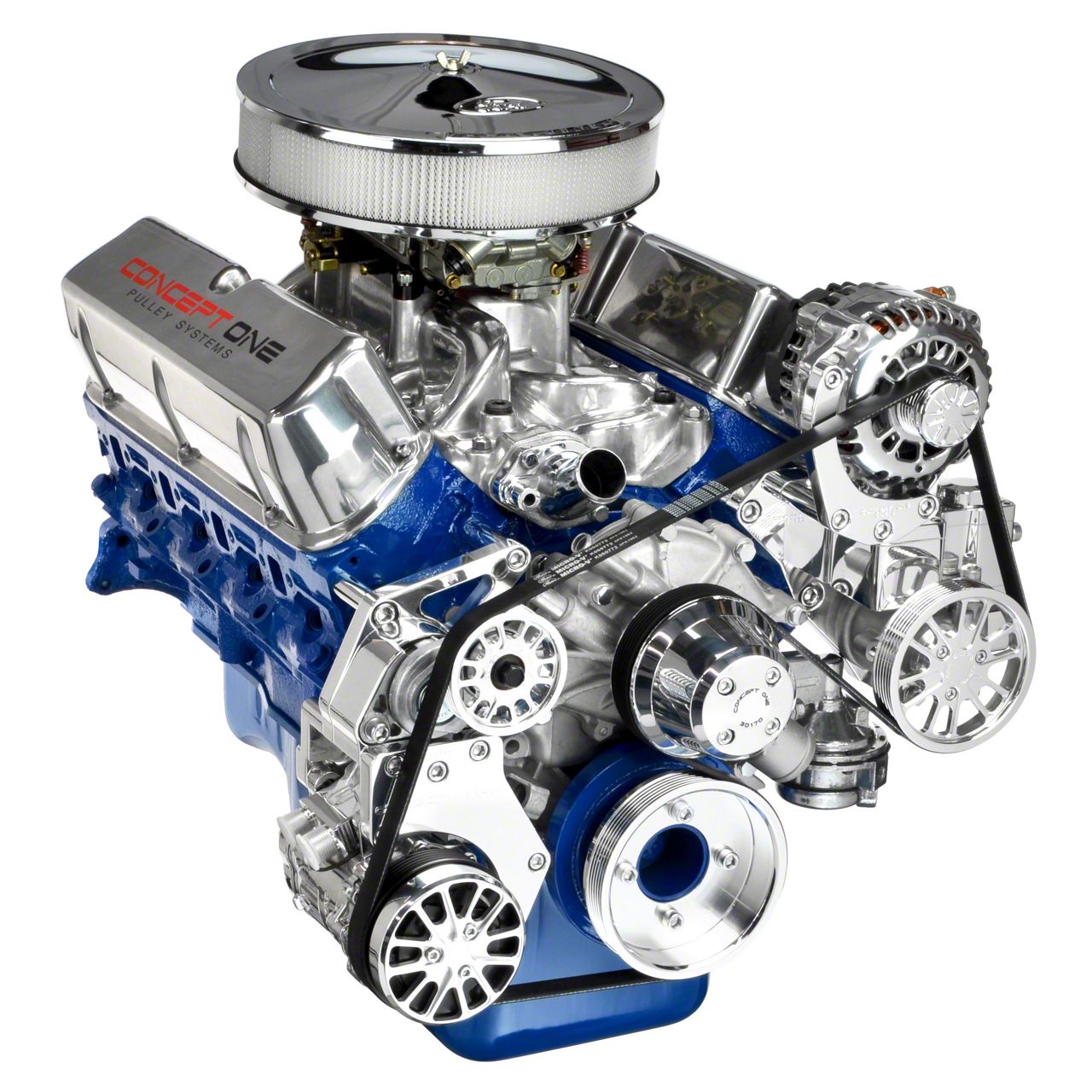Concept One developed this serpentine pulley kit to help you modernize your Small Block Ford 289 and 302 engine's charging, air-conditioning, and power steering to true serpentine function and reliability. Works with standard length water pump (5.875" dep