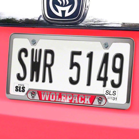 Embossed License Plate Frame with North Carolina State University Logo; Red (Universal; Some Adaptation May Be Required)