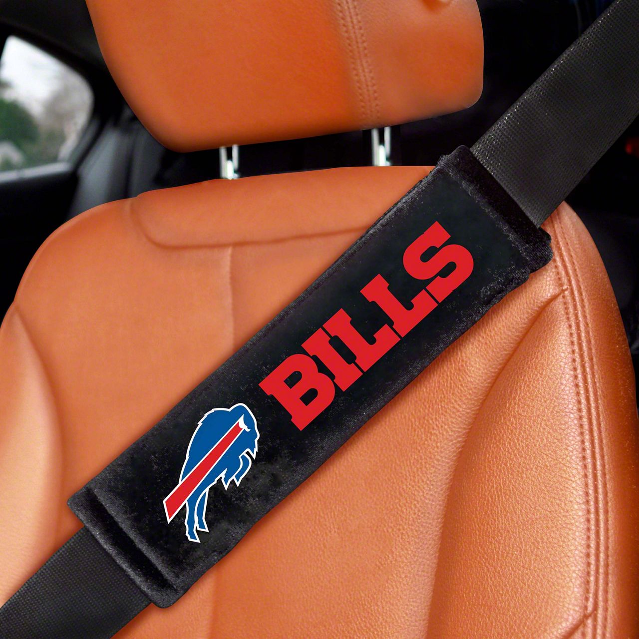 Embroidered Seatbelt Pads with Buffalo Bills Logo; Black (Universal; Some Adaptation May Be Required)