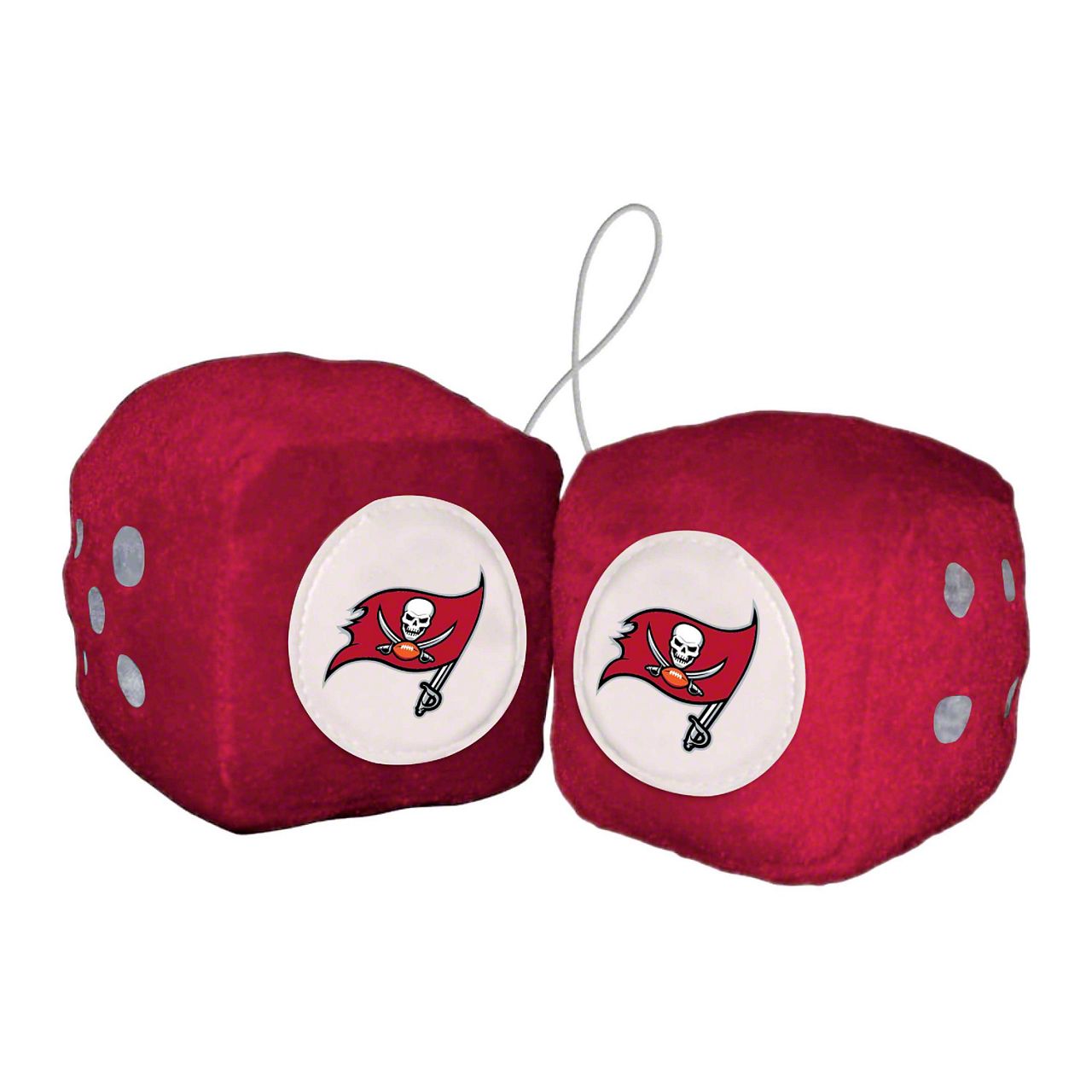 Fuzzy Dice with Tampa Bay Buccaneers Logo; Red (Universal; Some Adaptation May Be Required)