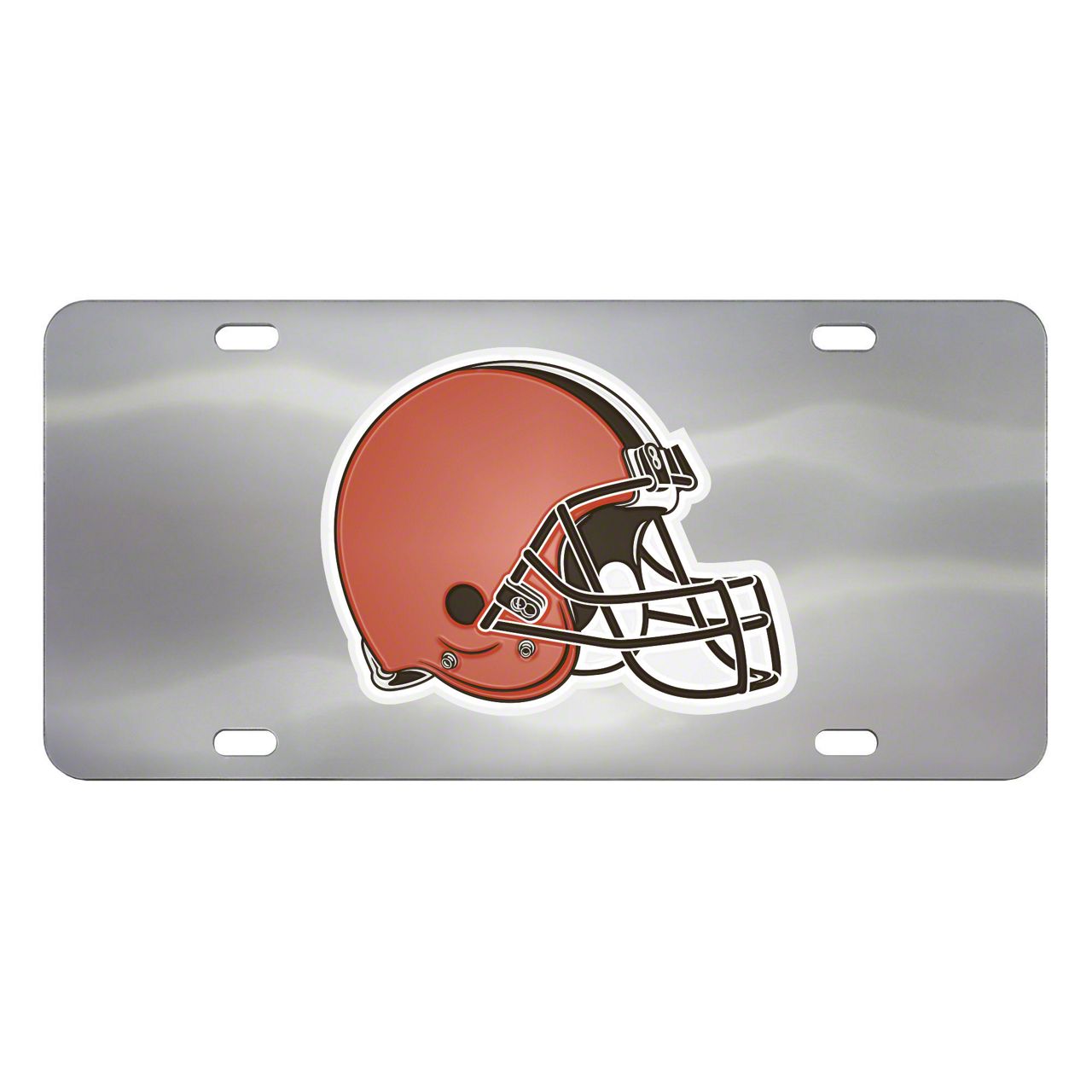 License Plate with Cleveland Browns Logo; Stainless Steel (Universal; Some Adaptation May Be Required)