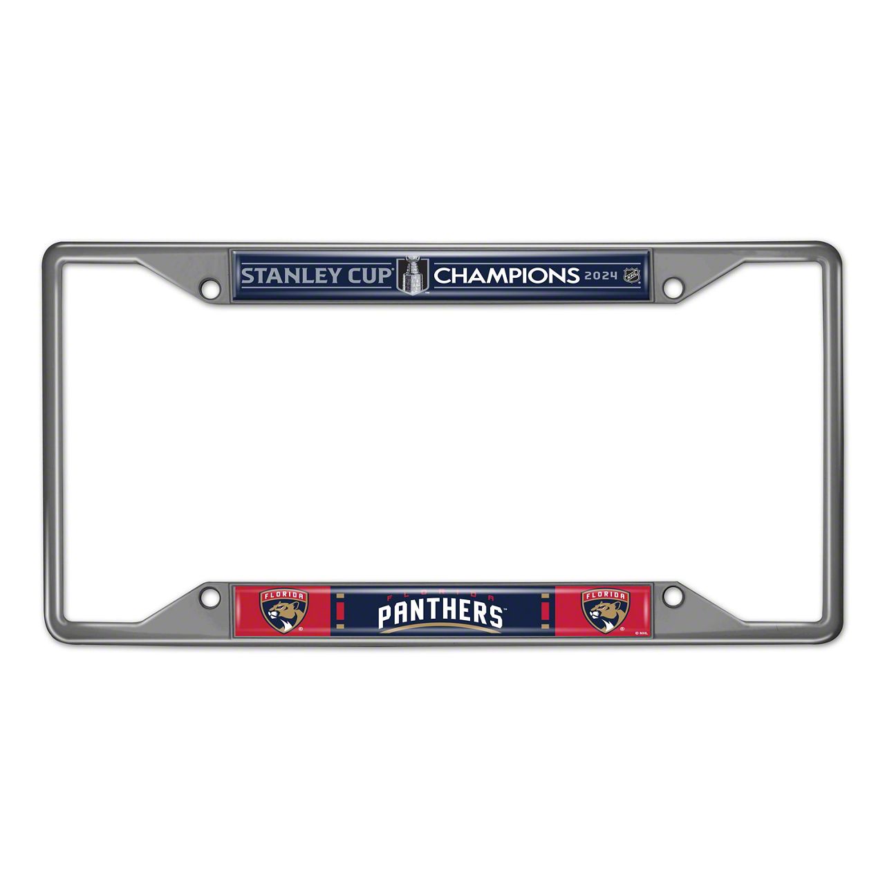 License Plate Frames from Sports Licensing Solutions are perfect for accessorizing your vehicle and showing off your team pride. Real chrome metal keeps your plate looking great season after season. Eye-catching City or University name is featured at the top and team name is at the bottom are both in vibrate team colors. To prevent any annoying rattling sounds, there are 4 pre drilled holes to ensure a secure fit. The Frame fits perfectly around license plates without covering your registration sticker (if applicable). Size is 12.25" x 6.25".