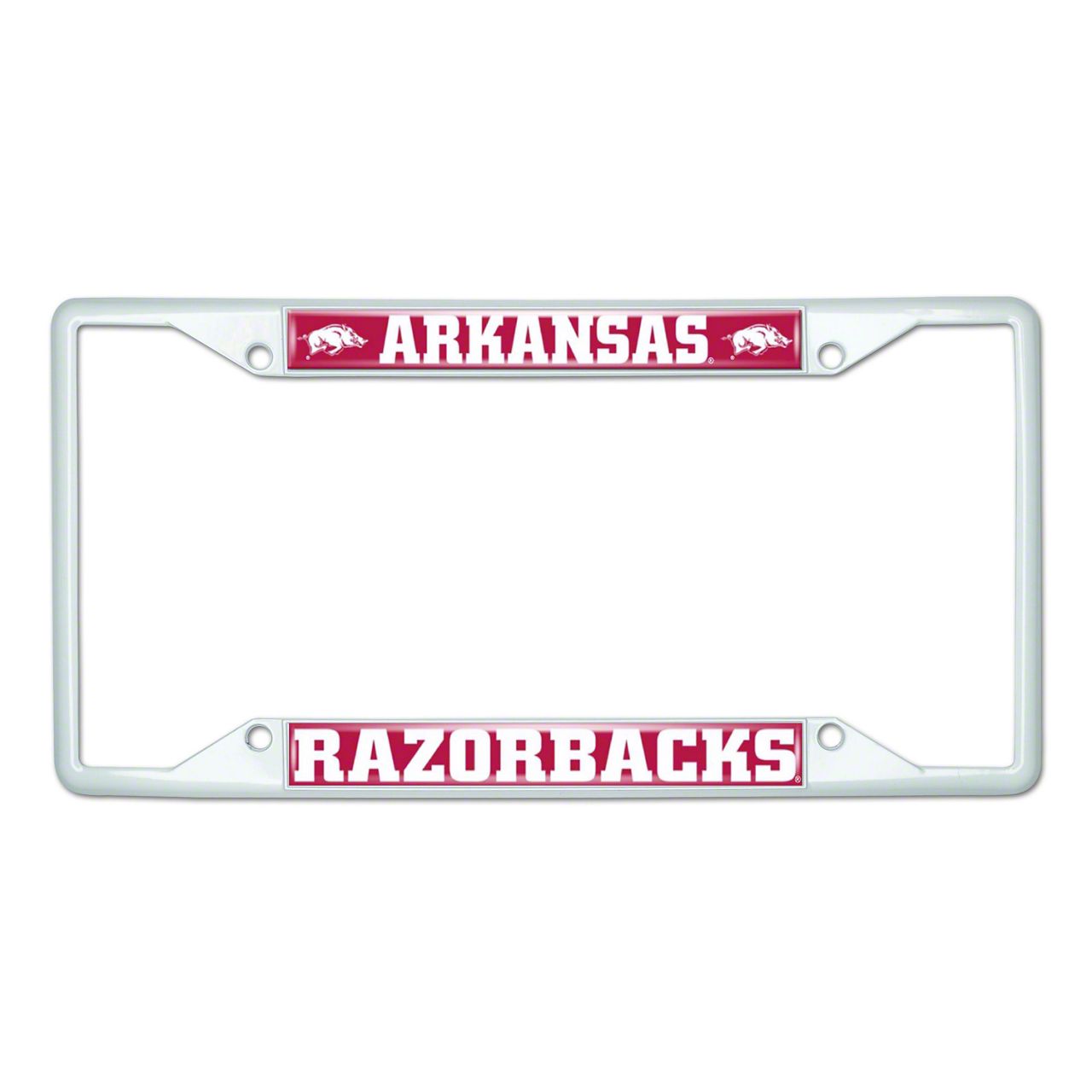 License Plate Frame with Arkansas; White (Universal; Some Adaptation May Be Required)