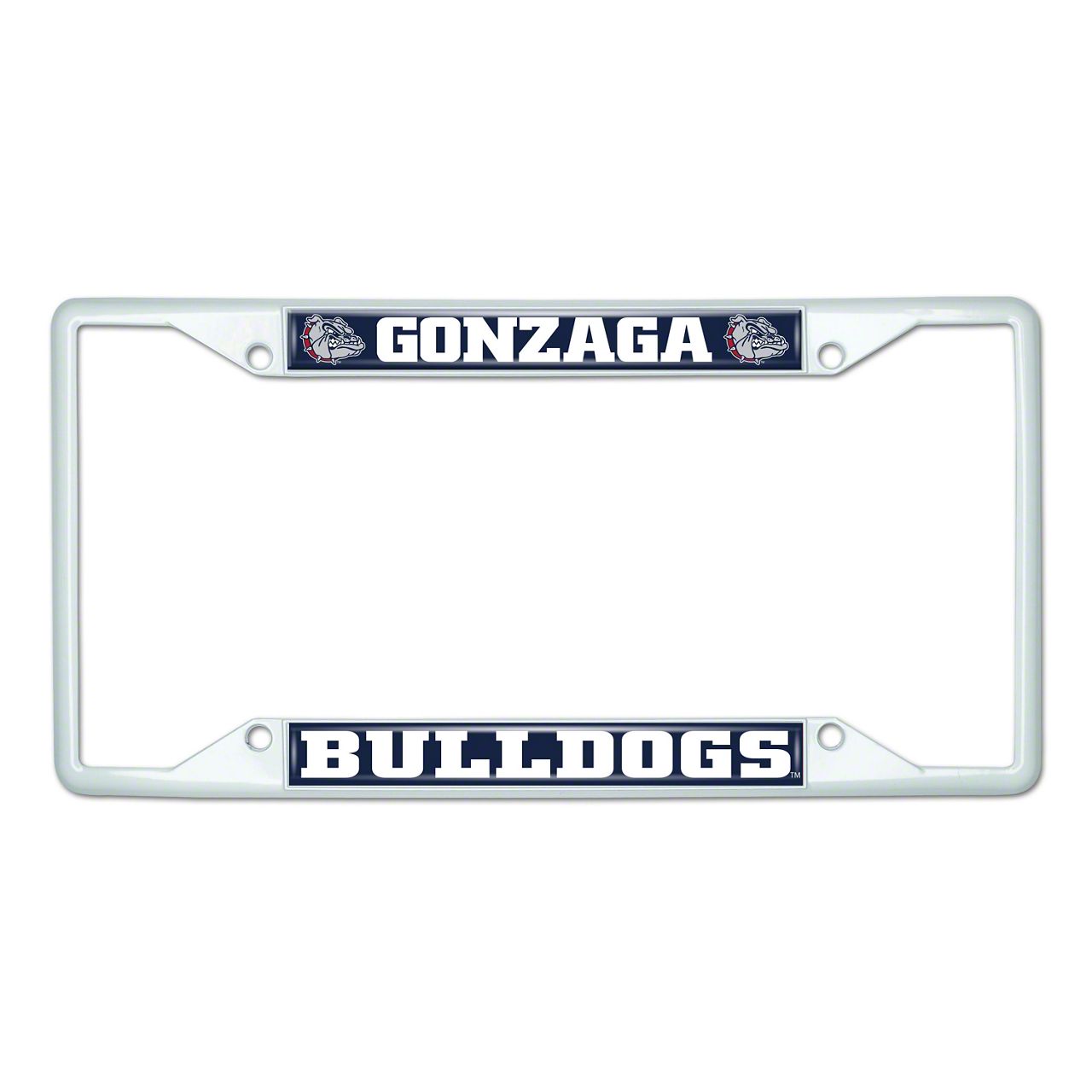 License Plate Frame with Gonzaga; White (Universal; Some Adaptation May Be Required)