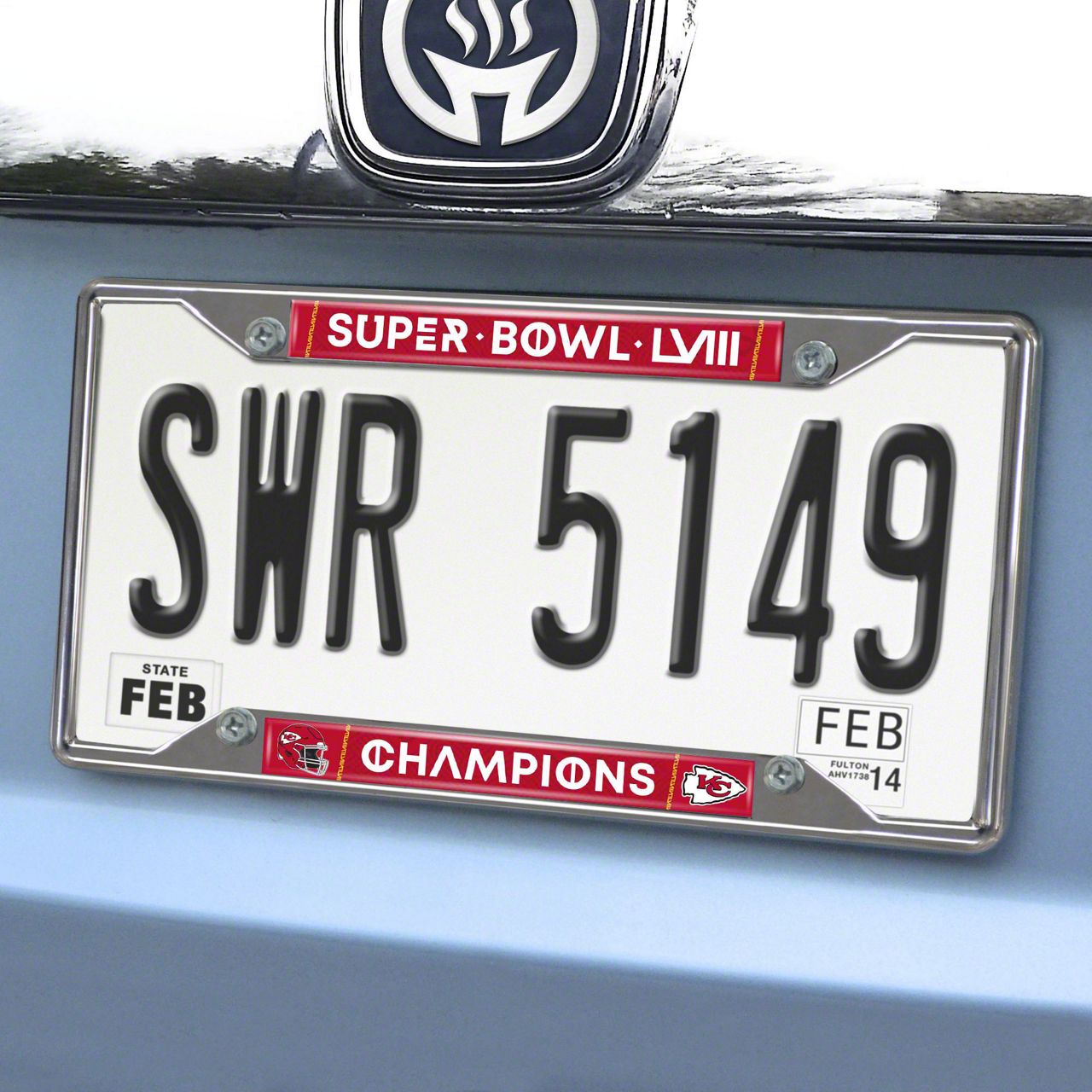 License Plate Frame with Kansas City Chiefs Super Bowl LVIII Champions Logo; Red (Universal; Some Adaptation May Be Required)