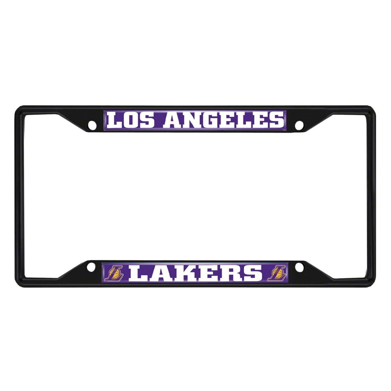 License Plate Frame with Los Angeles Lakers Logo; Black and Chrome (Universal; Some Adaptation May Be Required)